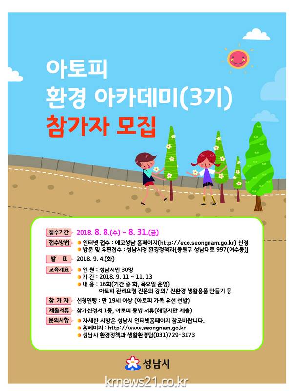 ▲ (사진=성남시청)성남시는 오는 8월 31일까지 ‘아토피 환경 아카데미’에 무료로 참여할 시민 30명을 모집한다.