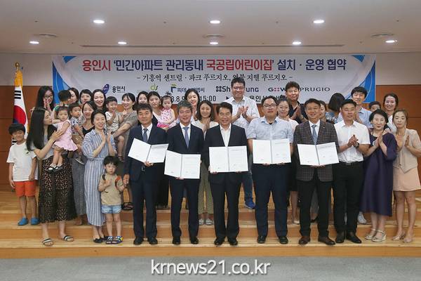 용인시는 9일 시청 비전 홀에서 ㈜신영 등 관내 아파트 사업주체 3사와 ‘국공립어린이집 설치, 운영 협약’을 맺었다.