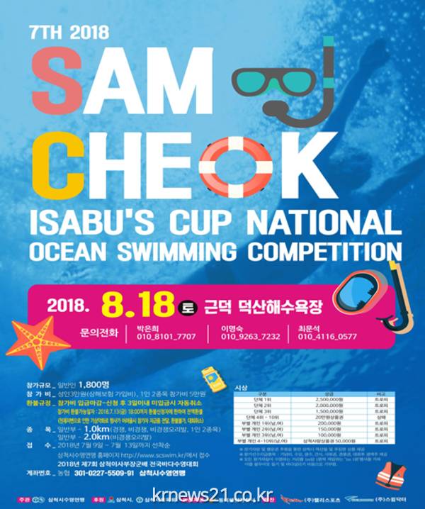 삼척시수영연맹에서 주최․주관하고 삼척시와 삼척시종합복지관이 후원하는 본 대회에는 전국의 수영동호인 2천여 명이 출전해 열전을 펼친다.