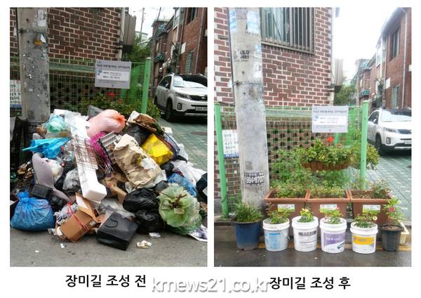 효과가 미미한 지역에는 ‘장미길 모임’에서 준비한 장미꽃 화분이나 화단을 꾸며 쓰레기 무단투기를 억제하는 방법을 사용하며 조금씩 변화를 만들어 갔다.
