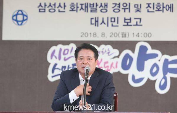안양시(시장 최대호)가 지난 18일(토) 삼성산에서 발생한 화재와 관련하여 ‘화재 발생 경위와 진화에 대한 대시민 긴급 시민 브리핑’을 가졌다.