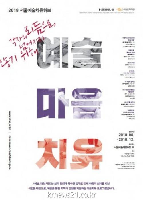 ‘예술, 마음, 치유’는 삶의 환경으로 인해 사회적 문제로 이어질 수 있는 마음의 상처를 예술로 회복하고 안정을 찾기 위해 지원되는 예술치유 프로그램으로, 서울시내 유관 기관과의 협력을 통해 총 8개 프로그램을 준비했다.
