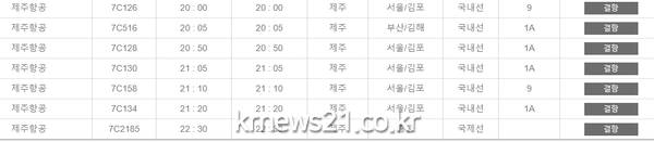 국토교통부는 22일 오후 5시 이후 제주공항 입출항 전편을 결항조치했다고 밝혔다. 총 152편으로 국제선 6편, 국내선 146편이다.