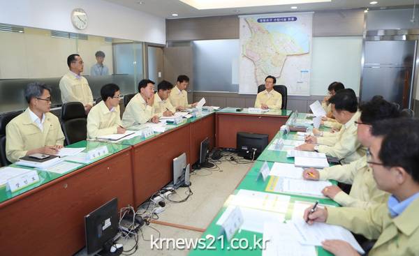 이날 회의에서는 태풍 예상 진로 및 기상상황을 파악하고 호우 및 태풍에 따른 부서별 조치사항 및 대처계획에 대한 내용을 점검했다.