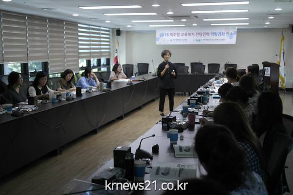 ▲ (사진=제주도교육청)제주특별자치도교육청(교육감 이석문)은 8월 21일(화)부터 23일(목)까지 3일간 제주시근로자종합복지관 중회의실에서 도내 교육복지사 및 사회복지사 등 25명을 대상으로 제주형 교육복지 전문인력 역량강화 연수를 운영했다.