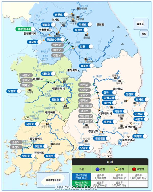한편 환경부는 여름철 녹조 발생에 대비하여 정수장 수돗물을 안전하게 공급할 수 있도록 수도사업자인 전국의 지자체와 협력하여 철저한 정수장 관리체계를 유지하고 있다.