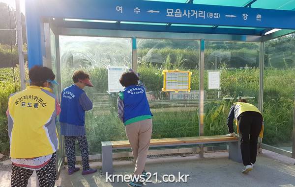 묘도동에 따르면 지난 19일 새마을지도자협의회, 바르게살기협의회, 주민자치위원회등 3개 자생단체 회원 20여 명이 버스정류장 청소를 실시했다.