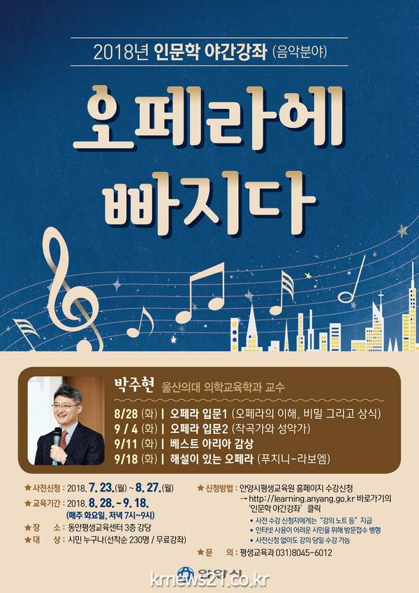 ▲ (사진=안양시청)안양시(시장 최대호)는 오는 27일까지 ‘오페라에 빠지다’야간강좌 프로그램의 수강생을 모집한다고 밝혔다.