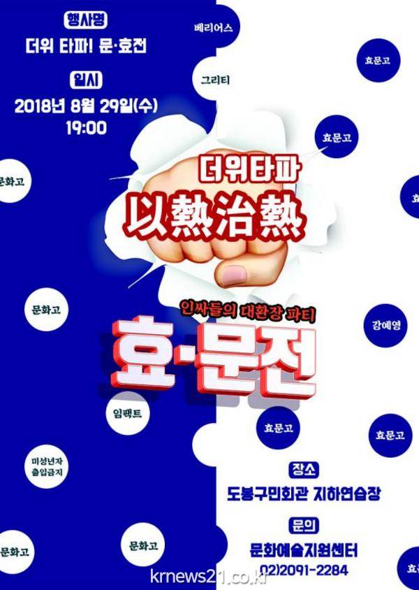 이번 지역예술인의 밤 ‘더위타파! 효 문전’은 예술에 관심이 많은 지역 청소년들이 주체가 되어 문화고등학교와 효문고등학교의 댄스, 힙합, 노래 동아리가 꾸민 배틀 무대로 꾸며진다.