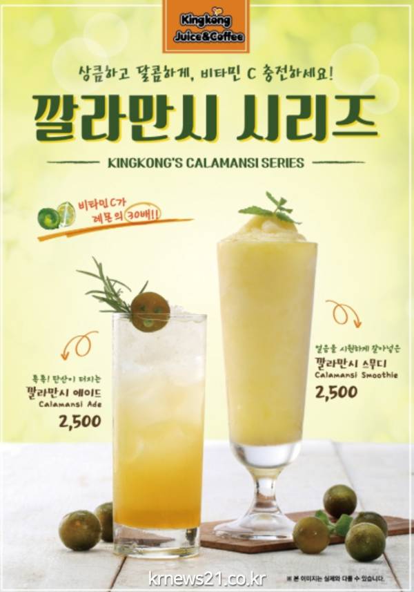 킹콩쥬스&커피가 비타민C 충전음료 '깔라만시 에이드 & 스무디'를 출시했다.