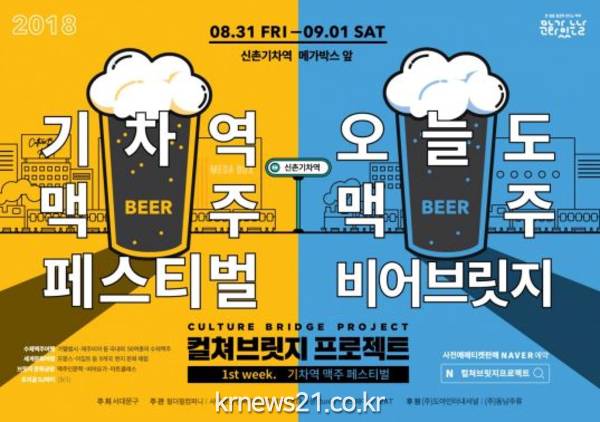 서대문구가 오는 31일과 1일 양일간 ‘컬쳐브릿지 프로젝트’의 첫 행사인 ‘기차역 맥주 페스티벌’을 경의중앙선 신촌역 광장에서 개최한다.