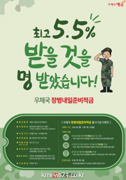 금융위원회와 은행연합회는 기존 국군병사 적금상품을 확대·개편한 장병 내일준비적금이 29일 KB국민, 신한, KEB하나, 우리은행을 포함한 14개 은행에서 출시될 예정이라고 28일 밝혔다.
