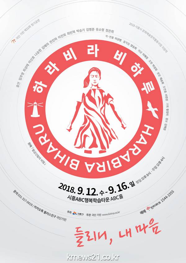 시흥시(시장 임병택) ‘극단기린’의 제32회 정기공연 <</span>하라비라 비하루> 연극이 오는 9월 12일 시흥ABC 행복학습타운 ABC홀에서 막을 올린다.
