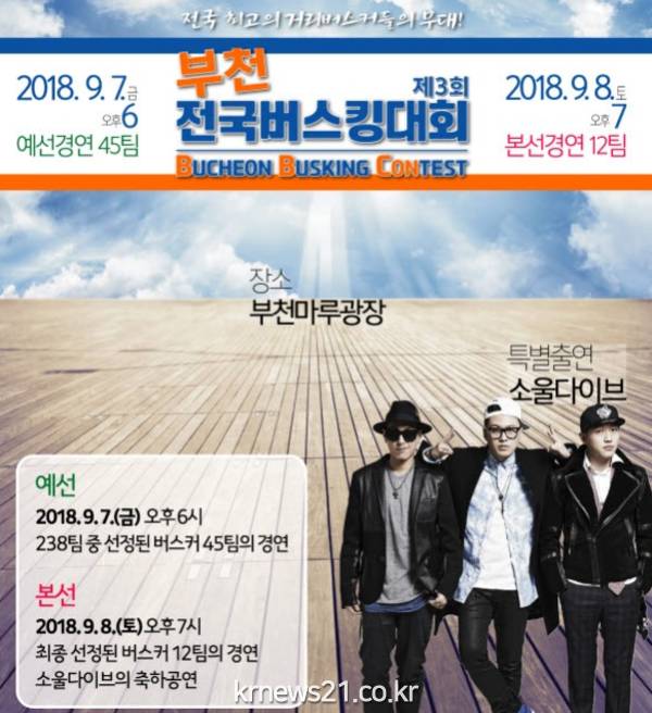 김용범 부천시 문화국장은 “창의도시 부천에서 펼쳐질 전국 버스커들의 멋진 공연이 벌써 기대된다”며 “3회째를 맞이한 부천전국버스킹대회가 버스킹 문화 확산에 기여하기를 바란다”고 말했다.