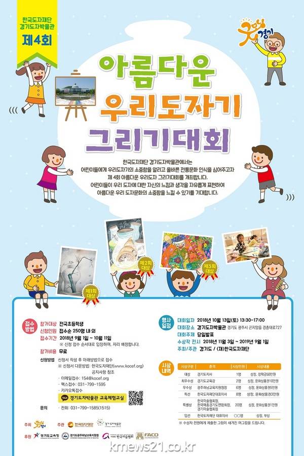 한국도자재단(대표이사 서정걸)이 오는 10월 13일 경기도자박물관에서 개최되는 ‘제4회 아름다운 우리도자기 그리기 대회’의 참가자를 모집한다.