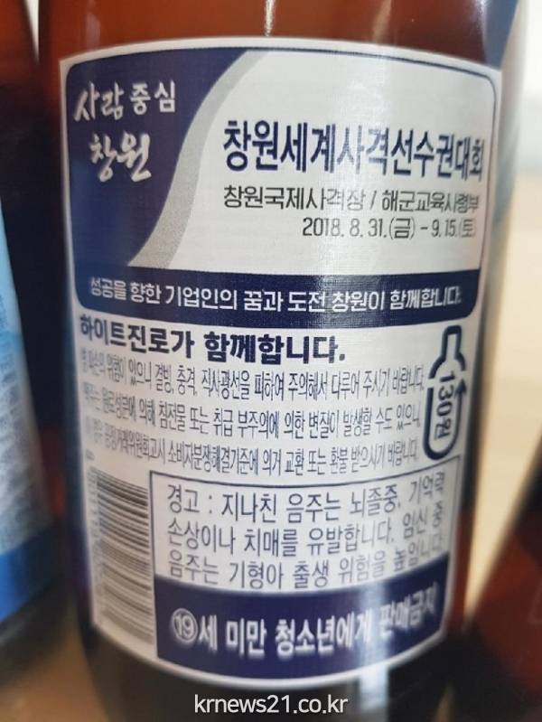▲ (사진=창원시청)창원시는 하이트진로㈜의 ‘하이트맥주’ 500만병의 보조상표(60*75mm)에 ‘성공을 향한 기업인의 꿈과 도전 창원이 함께합니다’란 문구를 게재해 30일부터 전국에 출하된다고 밝혔다.