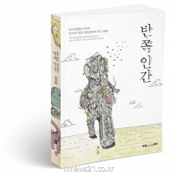 북랩은 직장생활과 퇴사를 주제로 직접 창작한 이야기에 손으로 그린 삽화를 엮은 일러스트레이터 엄경환의 그림책 <반쪽 인간>을 펴냈다.