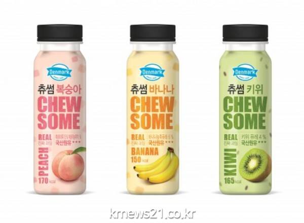 ‘덴마크 츄썸’ 3종은 100% 국산 원유에 신선한 과육을 갈아 넣은 프리미엄 우유다. 눈으로 확인할 수 있는 큼직한 과육 알갱이가 듬뿍 들어있어 씹는 맛이 살아있으며, 달콤한 과일 퓨레와 신선한 국산 원유가 조화롭게 어우러져 맛과 영양이 풍부하다.