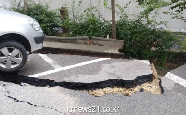 싱크홀 현상으로 인해 공사장의 임시펜스가 크게 휘어졌고, 아파트부지 안쪽까지 땅이 갈라져 아파트 주차장에 있던 차량 중 4대의 앞바퀴가 빠져 견인조치됐다.