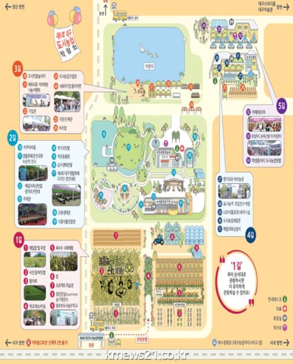 ▲ (사진=대구광역시청)제6회 대구도시농업박람회가 9월 6일부터 9일까지 4일간 대구농업마이스터고등학교(구.자연과학고)에서 개최된다. 대구시가 주최하고 엑스코가 주관하는 이번 박람회는 33만㎡의 넓은 대지에서 펼쳐지는 대규모 팜아트, 메밀밭, 박과채소터널, 옥수수 수확체험, 시민참여텃밭, 코스모스 길 등 도심속에서 경험하기 힘든 다양한 볼거리 및 체험을 제공하여 관람객에게 힐링의 시간을 제공한다.