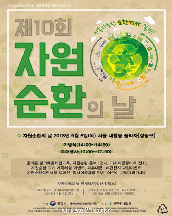 아울러, 이날 그간 자원순환 활동에 공로가 큰 기업, 지자체 등에 대한 분야별 시상식도 열린다.