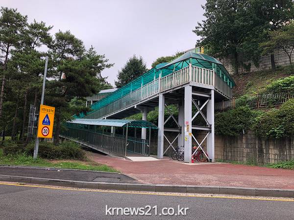 이에 기흥구는 계단을 철거하고 2억3천만 원을 들여 길이 66m 경사로 8%(약 5도)의 완만한 지그재그 형 이동통로를 만들었다.