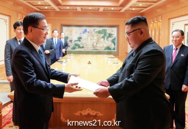 문 대통령의 특사로 평양을 다녀온 정의용 청와대 국가안보실장은 6일 청와대 춘추관에서 브리핑을 갖고 이같이 발표했다.