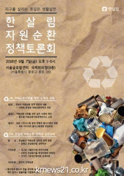 이날 토론회에는 환경부 관계자, 재활용 전문가, 일본 생협 관계자 등이 참석해 자원순환사회를 만들기 위한 과제들을 발표한다. 또 한살림은 토론을 진행하며, 앞으로의 자원순환 정책의 방향과 실천과제들을 살펴볼 예정이다. 한살림 자원순환 토론회는 이날 오후 1시부터 서울 종각역에 위치한 서울글로벌센터 국제회의장에서 진행된다.