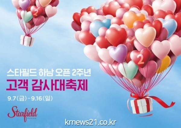 2016년 9월 오픈한 쇼핑테마파크 스타필드 하남이 개점 두 돌을 맞아 9월 7일부터 16일까지 ‘스타필드 하남 개점 2주년 감사 대축제’을 진행한다.