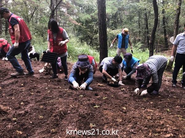 수원시가 6일 칠보산 습지에 육상식물 멸종위기 야생생물 Ⅱ급인 ‘칠보치마’ 500본을 이식했다.