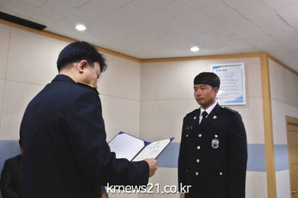 이날 기념식에서는 해양경찰 업무 발전에 이바지한 공로로 이후영(36세)순경이 경장으로 1계급