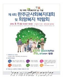 ▲ 희망복지박람회(전북/뉴스21)송태규기자= 완주군과 완주군사회복지협의회‧완주군지역사회보장협의체가 사회복지의 날 기념행사를 연다. 7일 완주군은 오는 11일 제19회 사회복지의 날을 맞이해 ‘완주군 사회복지대회 및 희망복지박람회’를 개최한다고 밝혔다.