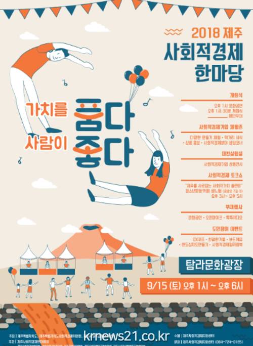 ▲ (사진=제주특별자치도청)제주특별자치도는 ‘가치를 품다, 사람이 좋다’라는 주제로 오는 15일 산지천 탐라문화광장 일대에서 「2018 제주사회적경제 한마당」 행사를 개최한다고 밝혔다.
