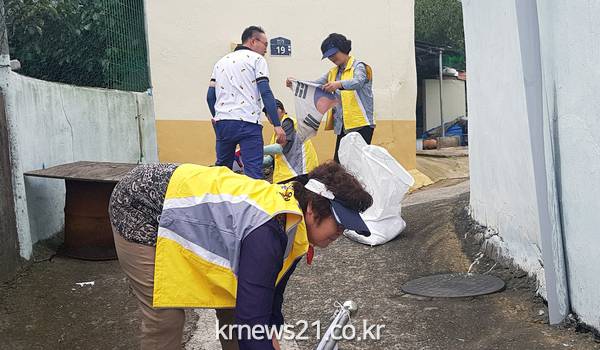 묘도동은 주민자치위원과 청년회원 30여 명이 지난 9일 500여 세대에 걸린 낡은 태극기를 새 태극기로 교체했다고 12일 밝혔다.