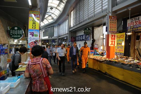 이창섭 충남소방본부장은 13일 태안서부재래시장에서 추석 명절을 대비하여 현장 확인행정을 펼쳤다. 태안서부재래시장은 총 197개 점포로 이뤄져 있어 화재 발생 시 많은 인명피해가 우려되는 시설로, 추석 명절에 대비해 화재예방 및 각종 안전사고 대비 점검이 필요한 곳이다. 이창섭 충남소방본부장은 이날 시장 관계자와 간담회를 통해 시설 안전관리에 대한 애로점 및 건의 사항 등을 청취했다. 이어 이 본부장은 관계자들과 함께 시설을 둘러보며 화재안전에 대한 경각심과 안전관리에 최선을 다해줄 것을 당부했다. 이 본부장은 “매년 명절에는 들뜬 분위기에 편승한 안전 불감증으로 화재와 각종 안전사고가 발생하고 있다”라며 “충남소방본부는 이에 대비한 화재예방 및 대응체제를 강화할 것”이라고 말했다. 한편, 태안서부재래시장은 화재예방을 위해 시장상인 20명으로 구성된 자위소방대를 조직·운영하고 있으며, 매월 소방통로확보 훈련 및 화재예방 캠페인을 실시하고 있다.