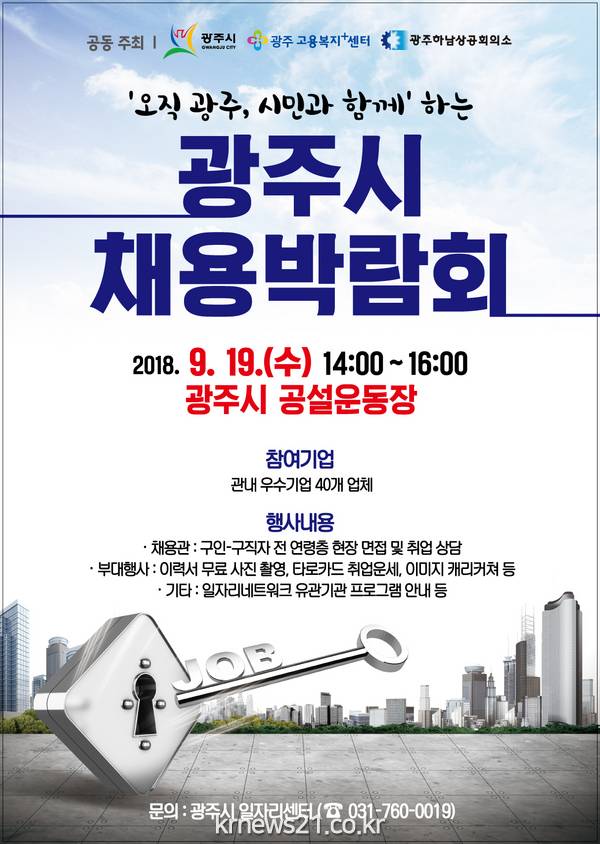 광주시(시장 신동헌)는 오는 19일 오후 2시 광주시 공설운동장에서 ‘오직 광주, 시민과 함께하는 광주시 채용박람회’를 개최한다고 14일 밝혔다.