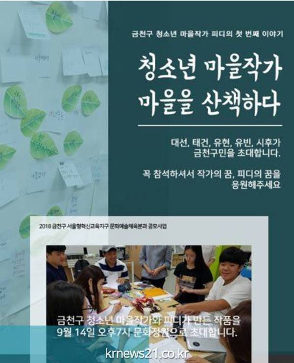 이번 북콘서트는 방송작가와 PD에 꿈이 있는 청소년들이 금천구라는 마을을 주제로 전문작가 지도를 통해 창작한 작품을 마을주민들에게 발표하는 행사다.