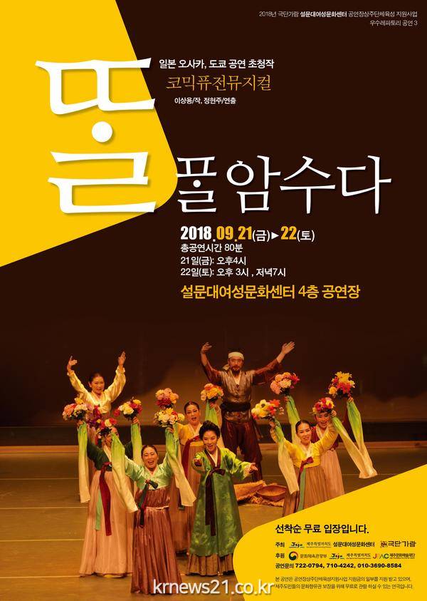 공연은 무료·선착순 입장으로 진행되며 공연관람문의는 설문대여성문화센터 문화기획팀(064-710-4242) 또는 극단가람(064-722-0794)로 하면 된다.