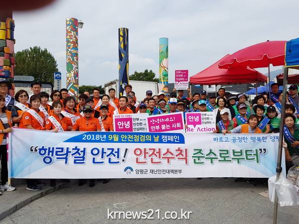 이번 캠페인은 양평군을 비롯해, 양평소방서, 양평군여성단체협의회, 지역자율방재단, 양평군 새마을지회, 양평재난통신지원단, 양평군자원봉사센터, 대한적십자봉사회, 안전모니터봉사단, 한국농어촌공사, 전기안전공사 북동부지사, 바르게살기양평군협의회, 양평공사, 양평군 안전보안관 등 약 100여명이 참여했다.