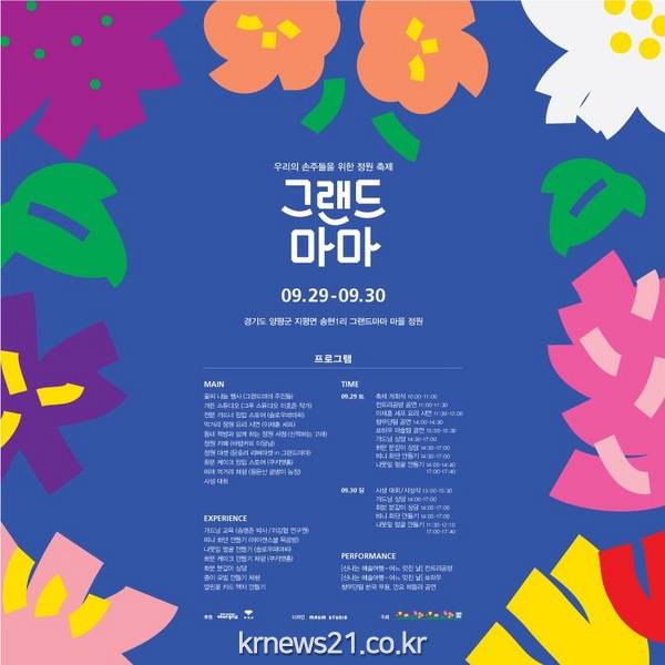 마을정원축제 “그랜드마마”는 지평면 송현1리(역말) 마을정원 추진위원회에서(마을이장 정성훈, 추진위원장 김미란) 주최하며, 축제명칭인 “그랜드마마”는 GRAND(웅장한,화려한)와 MAMA[어머니,경칭(따뜻함)]이 연상되는 단어)]의 합성어로, 이번 축제는 우리의 손주들을 위한 정원만들기(For our grandchildren)란 부제로 다양한 볼거리와 즐길거리를 준비했다.