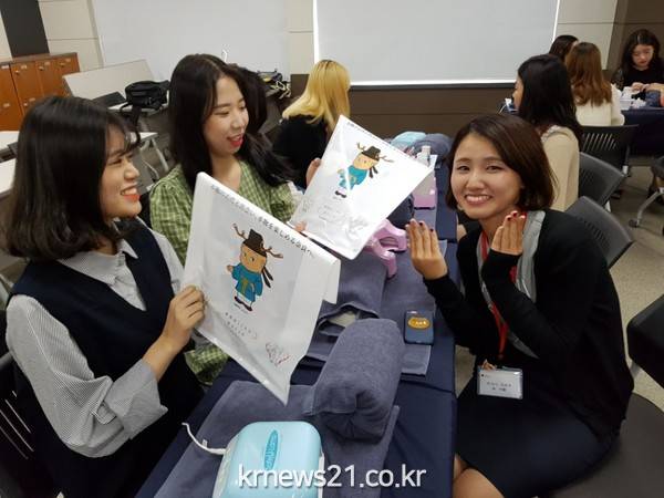 환담에 이어 일본 교류단은 학교 캠퍼스 탐방과 네일아트 실습 등을 체험했다.