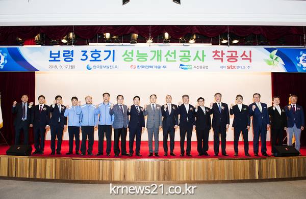 한국중부발전(사장 박형구)은 9월 17일(월), 국내 최대 화력발전단지인 보령발전본부 대강당에서 두산중공업, 세아STX엔테크, 한국전력기술 관계자와 중부발전 임직원이 참석한 가운데 보령 3호기 성능개선공사 착공식을 개최하였다.