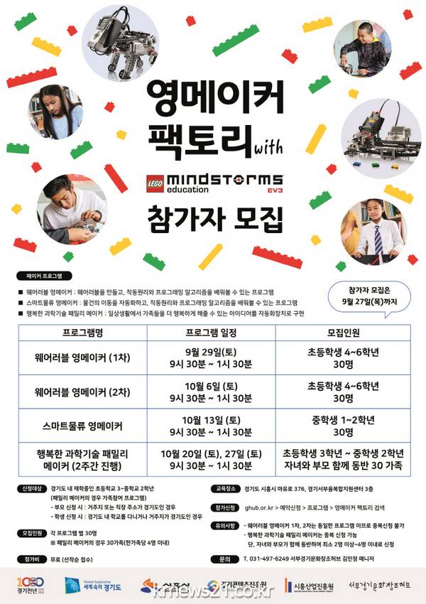 경기도와 시흥시, 경기콘텐츠진흥원이 ‘레고(LEGO)와 함께하는 영메이커 팩토리’를 개최한다.