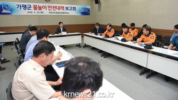 경기도는 20일 오후 가평 연인산도립공원에서 도 및 가평군, 경찰, 소방 등 유관기관 관계자 50명이 참석한 가운데 김진흥 행정2부지사 주재로 ‘가평군 물놀이 안전대책 결과보고회’를 개최했다.