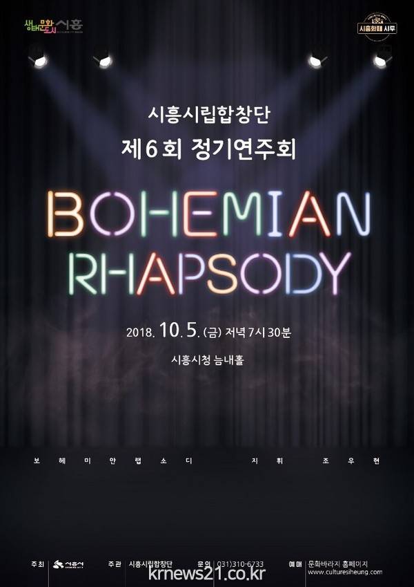 시흥시립합창단은 깊어가는 가을을 맞이하여 오는 10월 5일 저녁 7시 30분 시흥시청 늠내 홀에서 제6회 정기연주회 <</span>보헤미안 랩소디>를 개최한다.