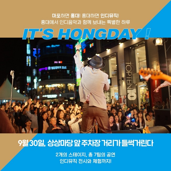 오는 30일(일) 홍대 주변이 인디음악으로 물든다. 마포구(구청장 유동균)는 홍대 서측 제1~3공영주차장을 야외공연장으로 꾸며 인디밴드 축제인 ‘홍데이 페스티벌’을 연다고 밝혔다.