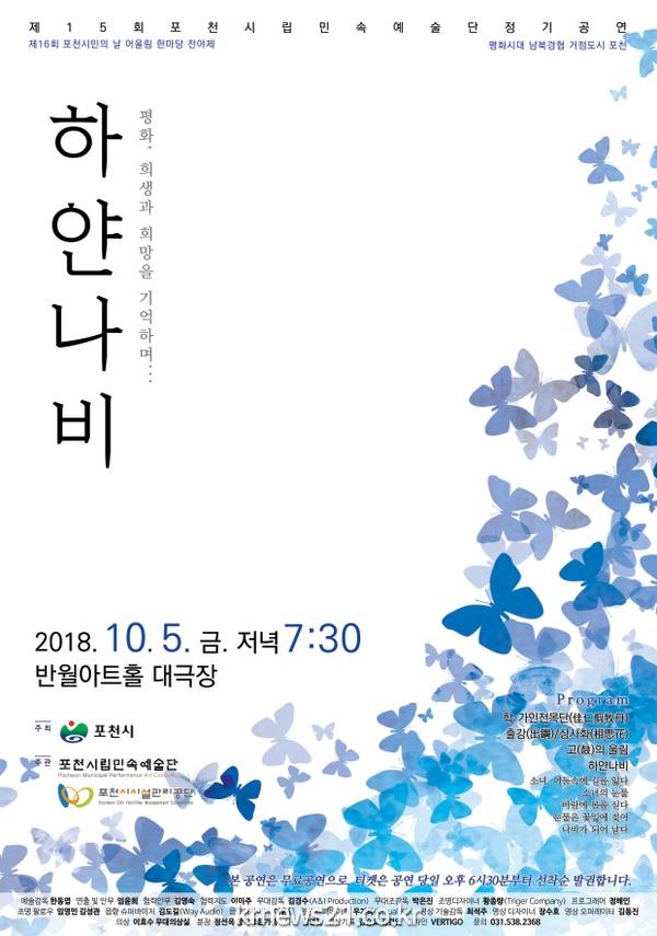 포천시는(시장 박윤국)는 10월 5일 포천반월아트홀 대극장에서 포천시립민속예술단의 제15회 정기공연 ‘하얀 나비’를 선보인다.