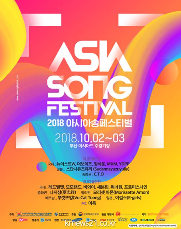 올해 부산에서 5번째로 개최하는 아시아송페스티벌은 K-POP을 매개로, ‘Asia Is One’을 주제로 개최되며, 아시아 뮤직 네트워크 구성으로 음악 산업 활성화를 위하여 부산시와 (사)아시아송페스티벌조직위원회(위원장 이기인)가 공동으로 주최한다.