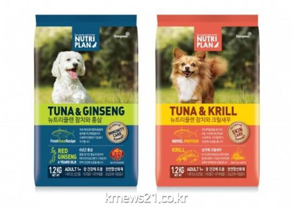 동원F&B는 동원이 직접 잡은 참치와 크릴새우를 비롯해 직접 만든 동원 천지인 홍삼분말을 담은 고급 애견 건식 펫푸드 ‘뉴트리플랜 애견 건사료 2종’(참치와 홍삼, 참치와 크릴새우)을 출시했다고 1일 밝혔다.