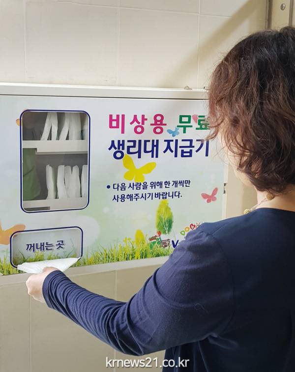 이에 구는 9월 20일 1호선과 4호선 지하철이 지나고, 스쿨버스 정류소 등 청소년들과 대학생, 직장인들의 이용이 많은 창동역(1번 출구) 동측 여성 공중화장실에 비상용 무료 생리대 지급기를 설치해 시범운영에 들어갔다.